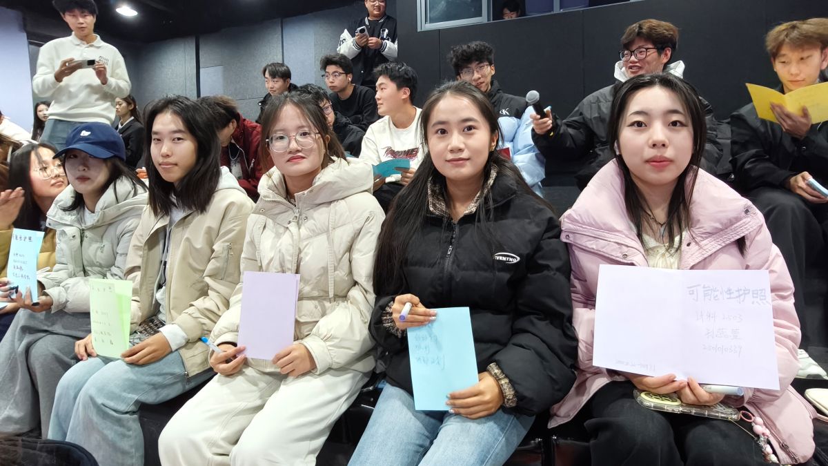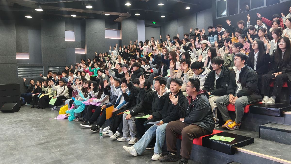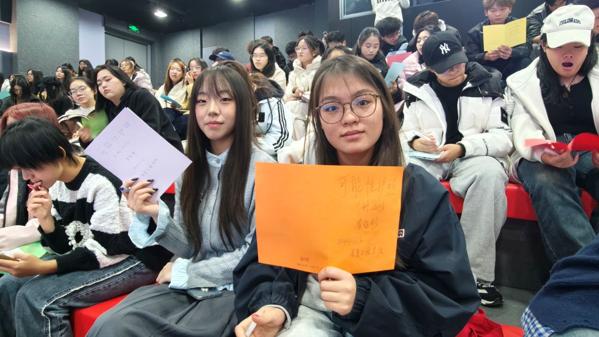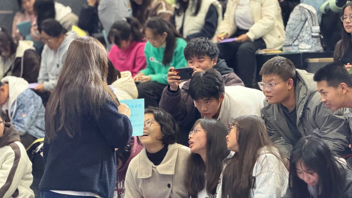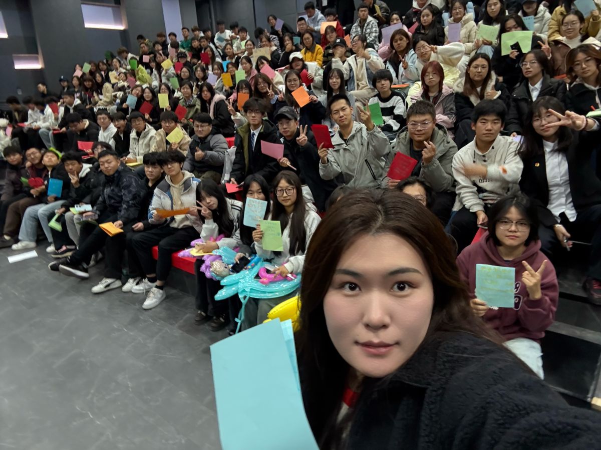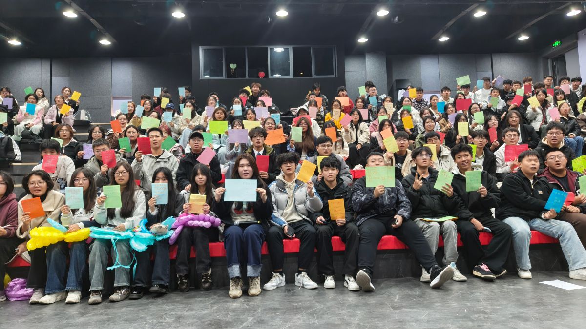活动伊始,王老师抛出话题:“你给大学贴了哪些标签?” 引发全场热议。她聚焦同学们最关注的几个方面,给出了真诚而实用的建议。针对健康问题,犀利指出 “长时间玩电脑是‘颈椎刺客’,不良睡姿、低头玩手机是‘体态杀手’”,呼吁大家警惕这些行为带来的颈椎侧弯等健康隐患;聊到恋爱观,坦言部分同学将恋爱视为大学“必选项”,但王老师建议大家通过课程或心理指导树立健康恋爱观,“恋爱不是必修课,但恋爱观是人生的‘学分课’”;面对未来规划的迷茫,王老师阐述“考公考研不是二选一的单选题,先探索、多积累,才能找到适合自己的最优解”,缓解了同学们刚入学对前途的焦虑。